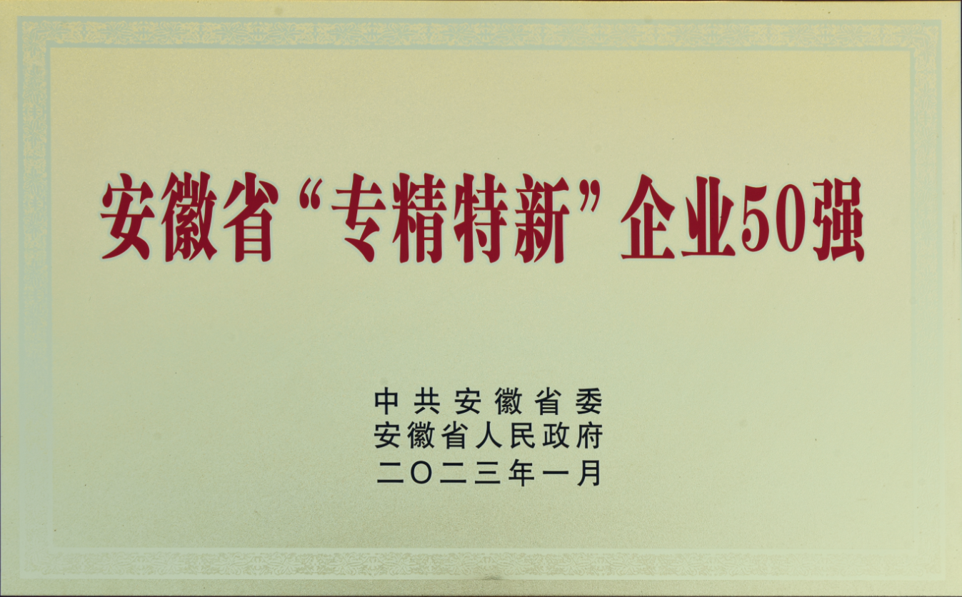 國家級專精特新重點“小巨人”企業(yè)、國家級高新技術企業(yè)、安徽省“專精特新”企業(yè)50強